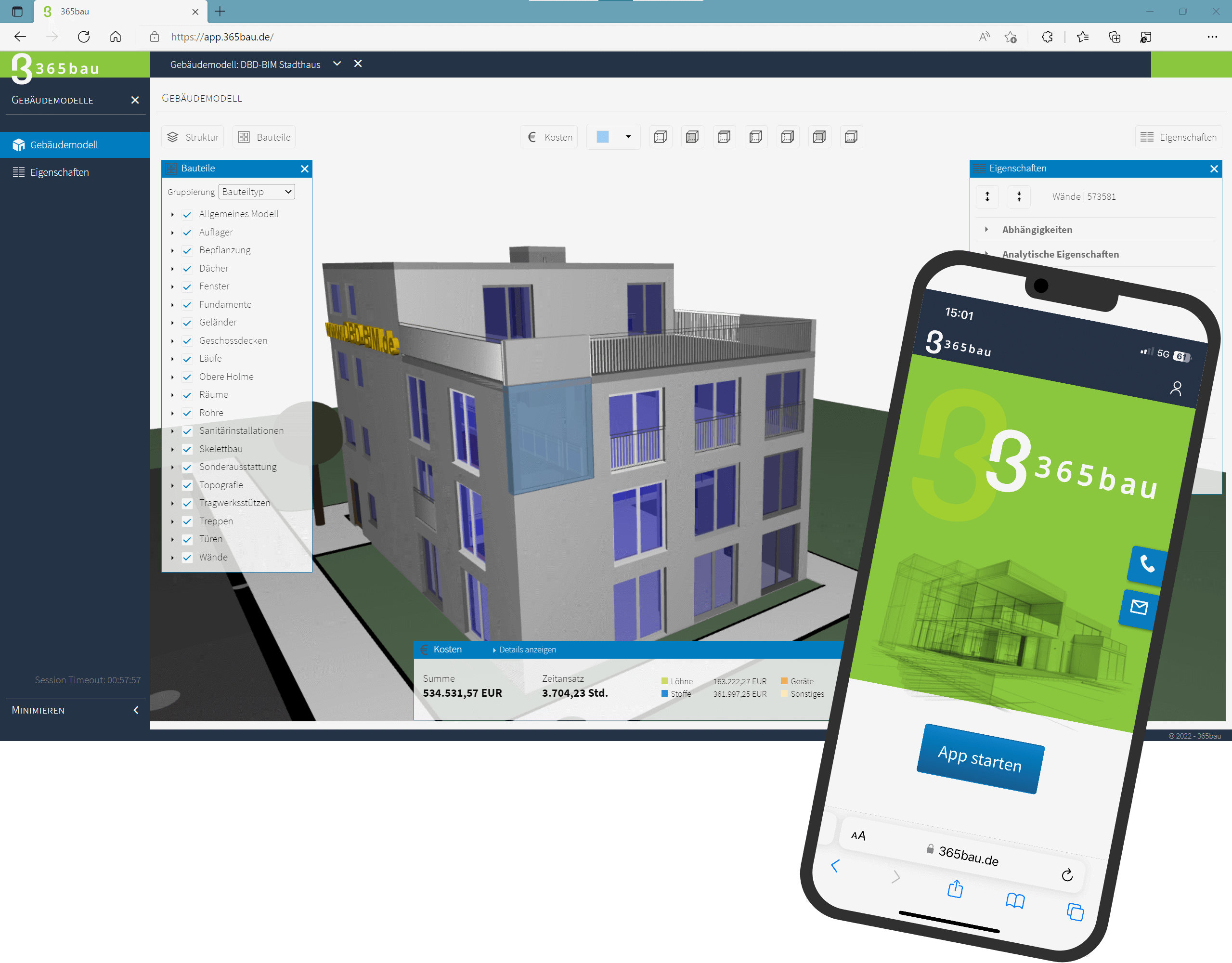 Mit 365bau erweitern Sie nextbau in die Cloud. Für Teamarbeit, BIM und praktische Zusatzfunktionen. In nextbau, im Internet-Browser und sogar auf dem Smartphone.