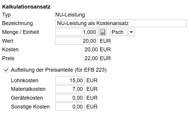 EFB 221 bei Kalkulation mit Vollkostenstundensatz