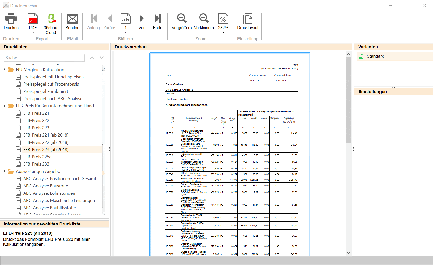 Belastbare Orientierung mit Preisanteilen nach EFB 223 und Stoffkosten im Detail