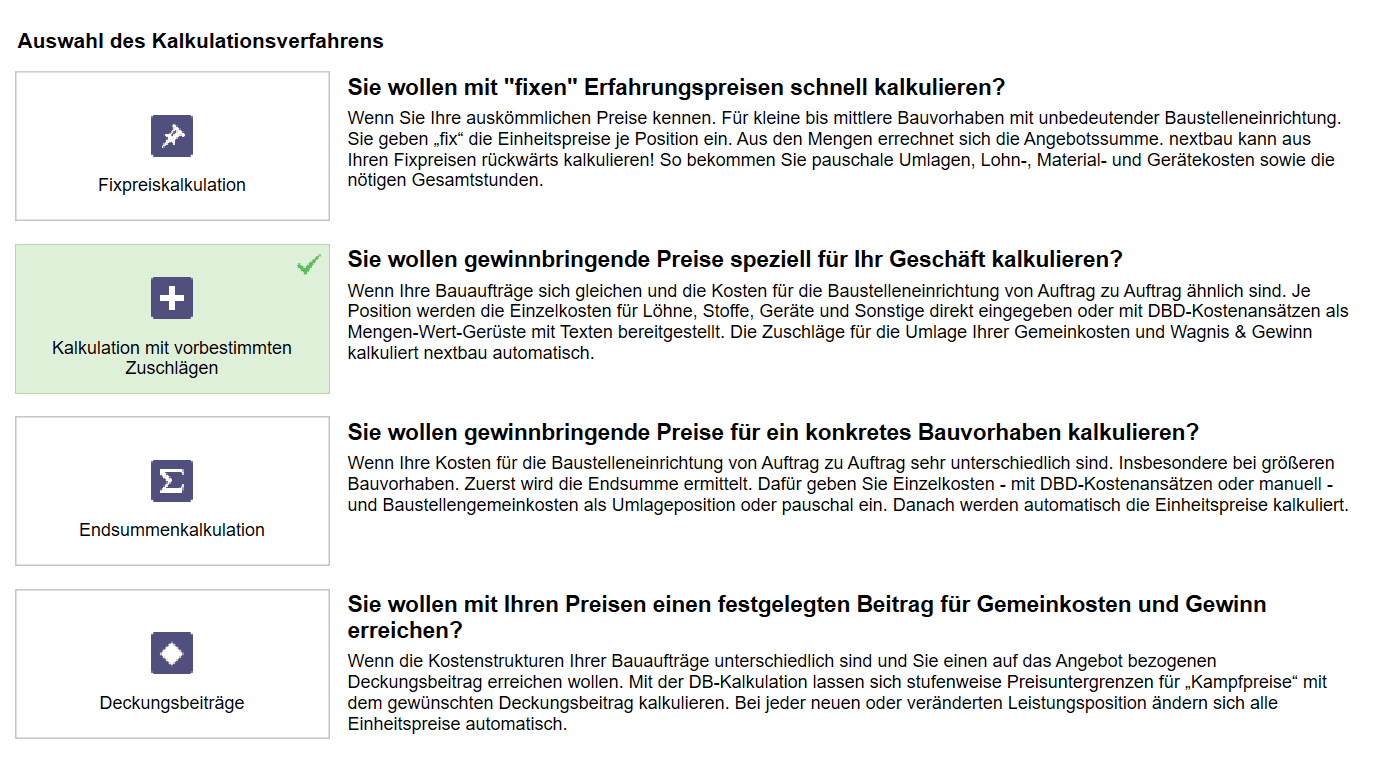 Auf Grundlage der Löhne, Zuschlagssätze und der grundsätzlichen Umsatzverteilung eines Betriebes lassen sich Preise aber sozusagen „rückwärts“ kalkulieren. Mit nextbau erfolgt dies genau in der von den EFB-Formblättern verlangten Struktur. So können die EFB-Preise tatsächlich nachträglich ausgefüllt werden. Obwohl dem Angebot gar keine entsprechende Kalkulation zugrunde lag.